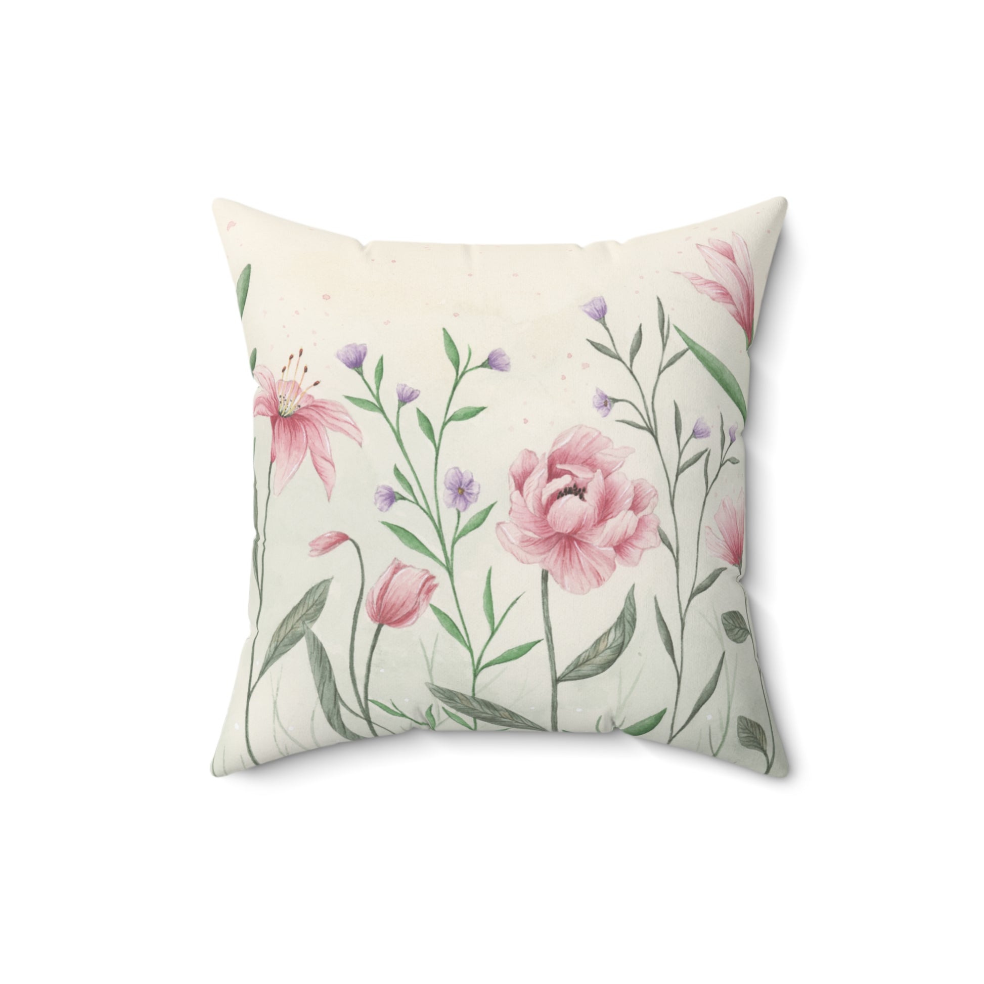 Pink Watercolor Floral Cushion